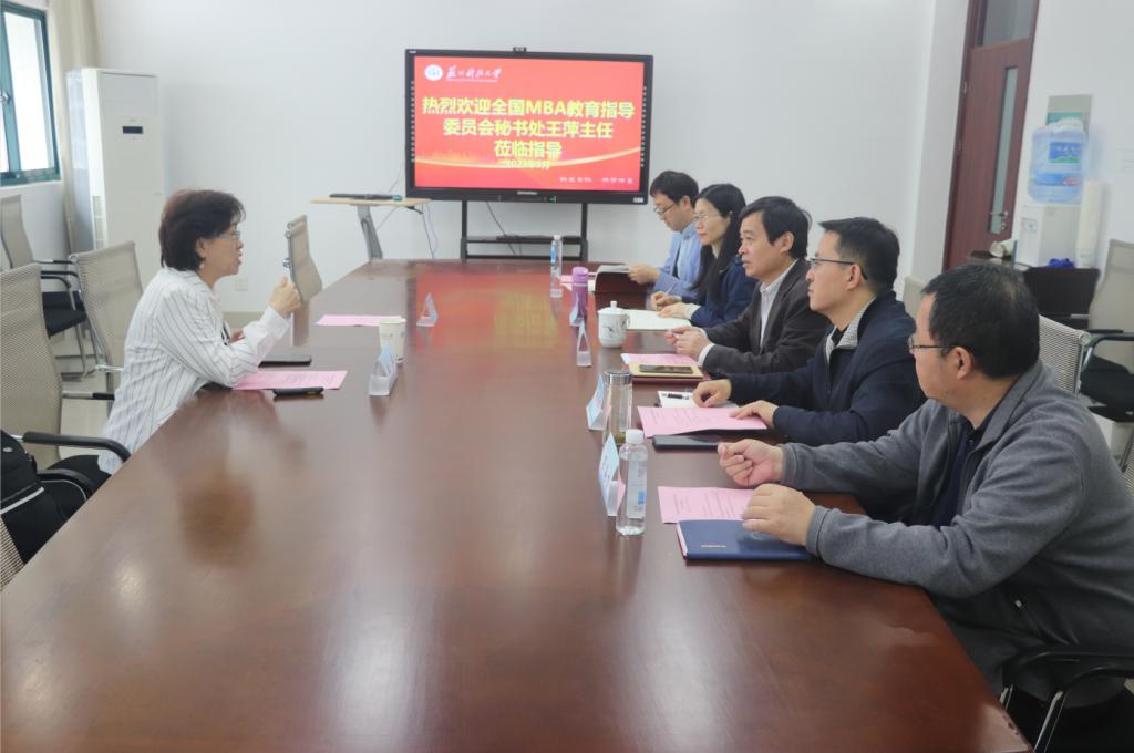 王萍以《如何试办MBA项目》为主题做指导报告。报告中,王萍详细讲解了中国MBA教育发展的历程、现状及趋势,MBA教育的目标与特点、如何开展MBA教育及MBA项目评估,并通过对比分析江苏省MBA教育概况,指出我校MBA项目的优势及存在不足,并从专职管理队伍、招生规模、学费学制、师资队伍、项目培养、办学特色、建章立制等多个方面提出了宝贵的意见和建议。