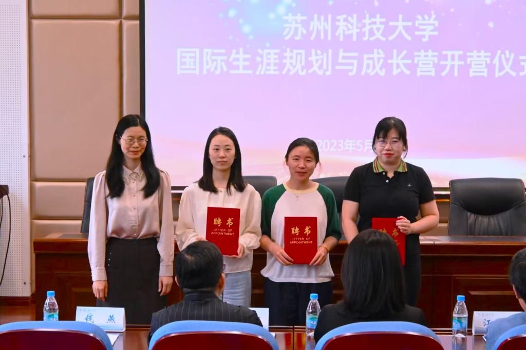 杨传明介绍了成长营基本情况及发展规划;钱佳、江忠华为苏州科技大学国际生涯规划与成长营揭牌;钱燕、董现珠分别为教师和学生骨干颁发聘书;李文老师和韦钰晗同学做代表发言;三位开云体育
