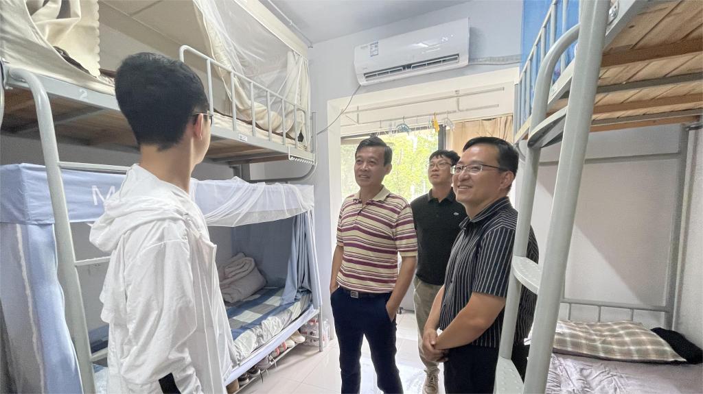 党委书记江忠华、党委副书记兼副院长董现珠、副院长杨传明及新生辅导员老师走进新生宿舍,与同学们亲切交谈,了解同学们的关切,并给贫困学生送上了爱心大礼包,让他们放下心里的包袱,在人生新阶段踏上新征程、拥抱新希望、与老师携手共同书写更加精彩的人生篇章!