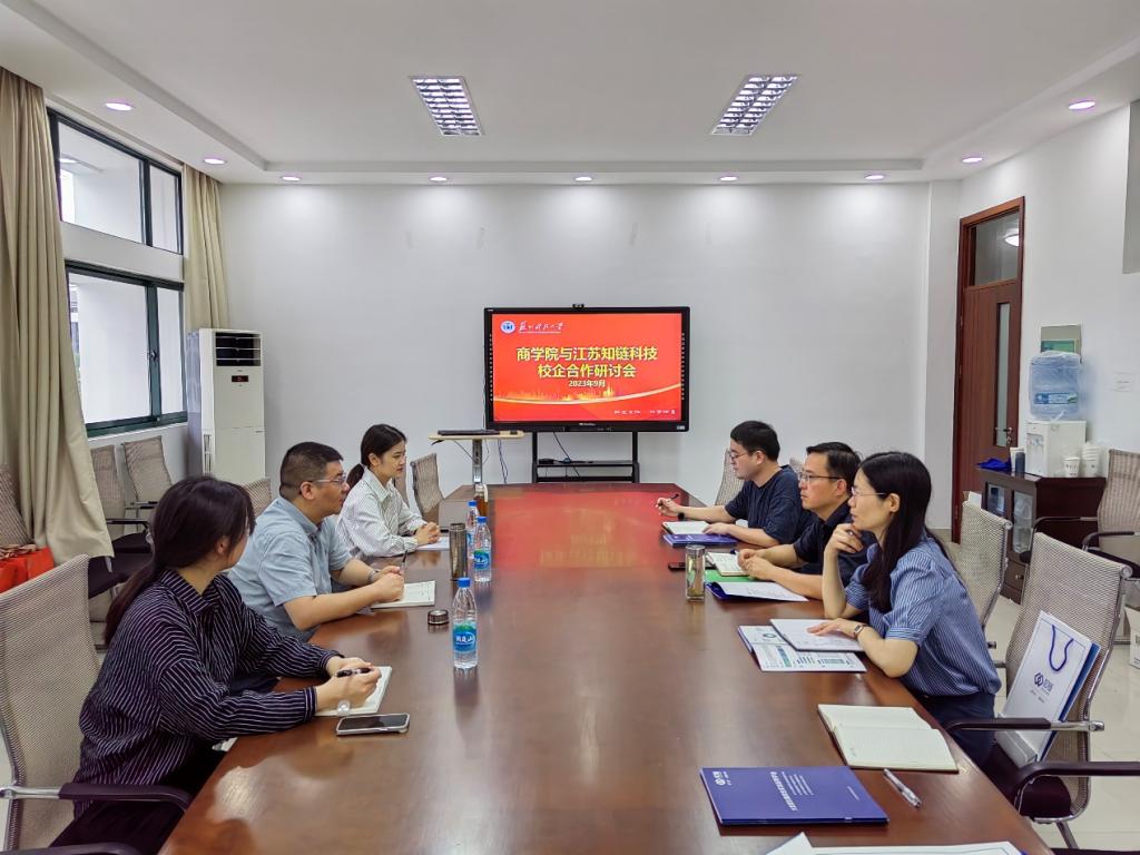 和江苏知链科技有限公司展开校企合作深入研讨。江苏数字金融产学研创新中心执行主任、江苏知链科技有限公司总经理施亚东、副总经理王菁,开云体育