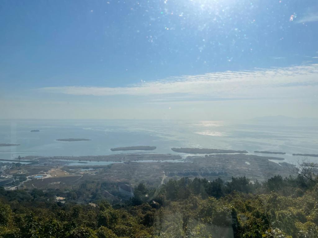 老师陆续登上山顶观景。站在山顶,南边可眺望东山莫厘峰、西山缥缈峰、三山岛和太湖大桥。西边可眺望漫山岛,北面可眺望冲山岛,太湖渔港村、邓尉山、玄墓山和光福飞机场,姑苏美景一览无遗。许多老师纷纷拿出相机记录这美丽风景。