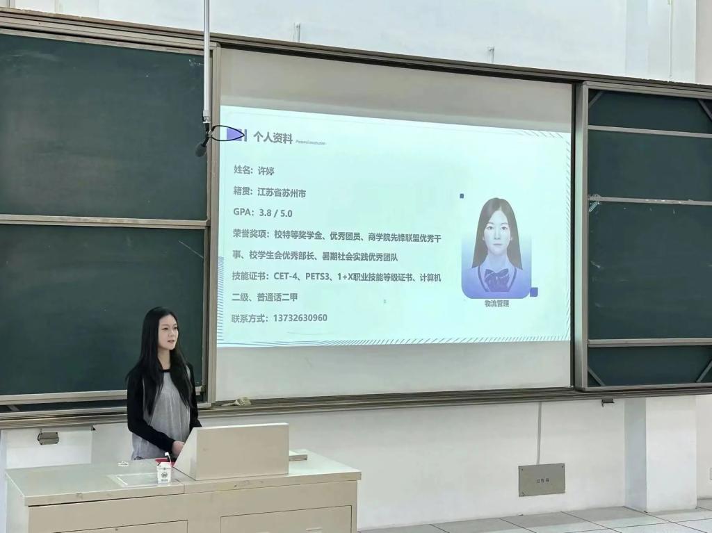 工商2011徐佳雯以“大学生是什么”这一问题导入,从思想教育、专业学习、科研竞赛、学生工作、社会实践、学期规划等六个方面进行宣讲,她建议新生坚定脚踏实地的精神、保持科研竞赛的热爱,以锻炼能力为导向开展学生工作,将不怕苦的精神贯彻;金融2012白语扬从目标规划、时间分配、效率重点、综合发展四个方面提出建议。此外,她建议新生制定时间管理方法,提醒新生学会充分利用大学自由时间,以较小的时间单位办事,挖掘自己的潜力;物流D2111许婷以苏州的人文风貌开篇,围绕学生组织、综测、技能三方面展开宣讲。她建议新生可以参加一个或多个社团或学生组织,重视单词的积累,进行适当的阅读,她鼓励新生要“勇于尝试,敢于走出舒适圈”;财管2112王倪旎认为学习上要明确目标、合理规划,思想上坚定入党动机、强化理论学习。同时,她提出了关于学生组织、竞赛实习、志愿服务的相关建议。
