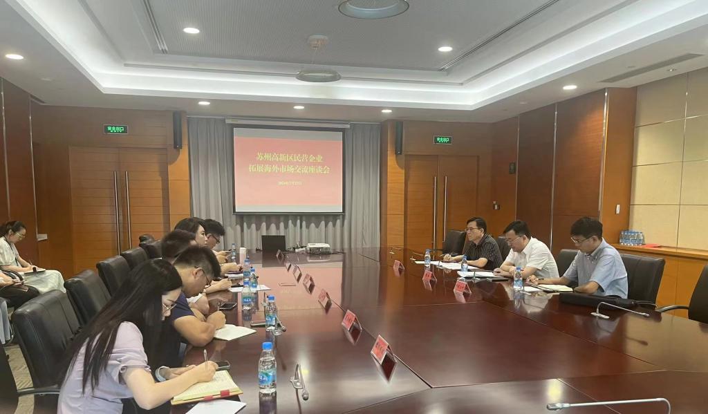 7月23日,苏州科技大学企业服务团副团长杨传明和成员郝良峰就企业“出海”服务需求赴高新区工商联开展调研交流,高新区工商联副主席瞿峰,莱克、固德威、优捷等多家企业负责人出席座谈会。