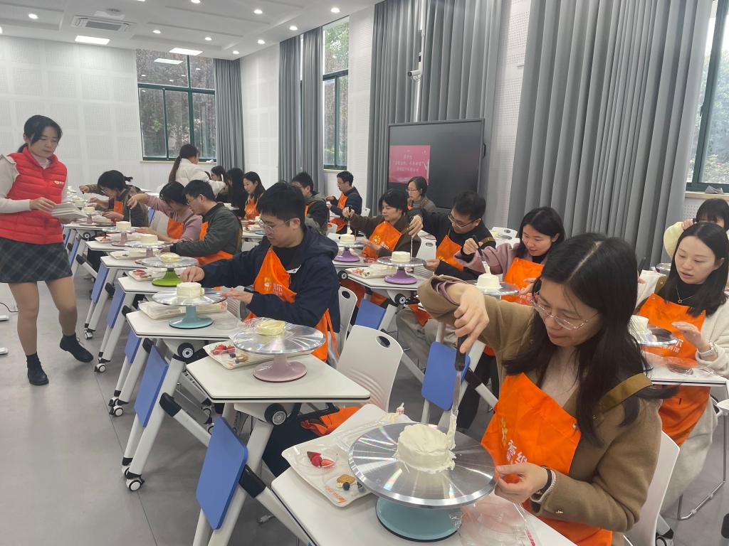 分工会组织了一场别开生面的“温暖金秋,尽享甜蜜”蛋糕DIY比赛活动。11月20日下午,教职工们欢聚一堂,在专业烘焙老师的带领下制作美味水果奶油蛋糕。