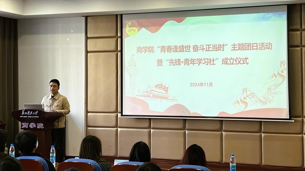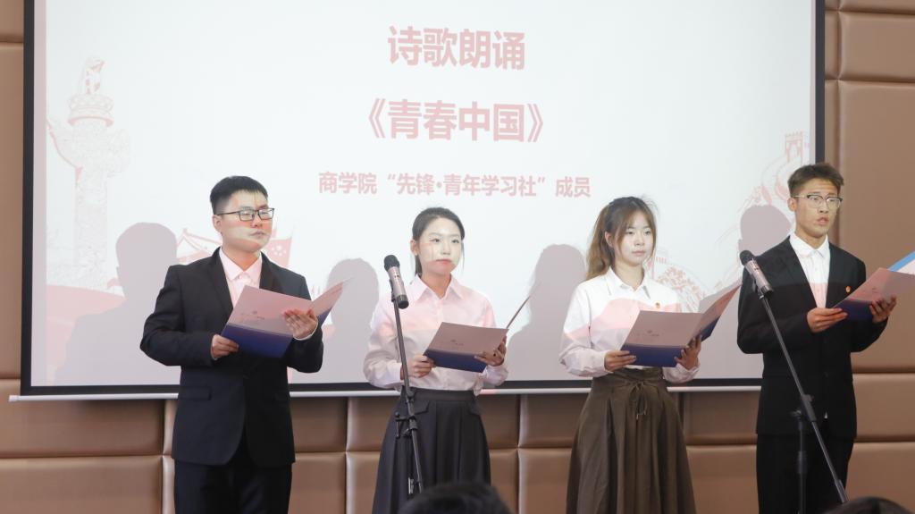 会上,江苏高校百校万名团干部思政技能大比武一等奖获得者人力2212班黄星怡主讲信仰公开课《针尖上的锦绣 绸缎里的中华》;第十四届“挑战杯”创业计划竞赛“一带一路”国际邀请赛全国银奖获得者工商2212班辛佩瑶展示了获奖项目;“先锋·青年学习社”带来朗诵《青春中国》和朋辈课堂《谱写新质生产力新篇章》。