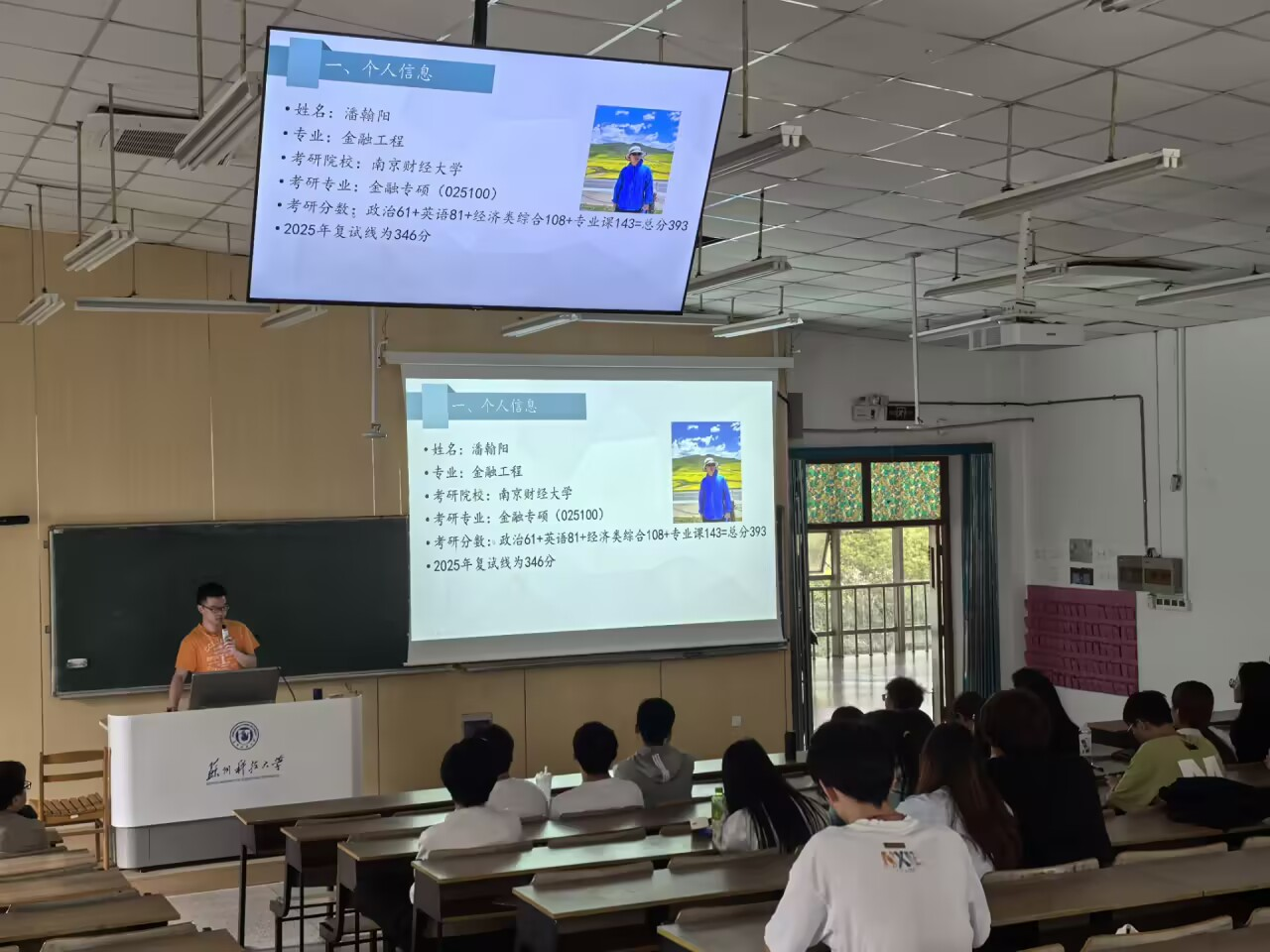 本次活动以“明晰方向,规划未来”为主题,分为专业解读与学长经验分享两大环节。张浩博首先系统介绍了金融工程专业“金融投资”与“金融科技”双方向培养体系,解析了两大方向的课程设置、苏州区位优势及就业前景。随后,四位大四同学结合自身经历分别从考公务员、考研、出国、就业等方面分享经验。最后,钱燕鼓励学生早定目标、多元发展,成长为行业所需的复合型人才。