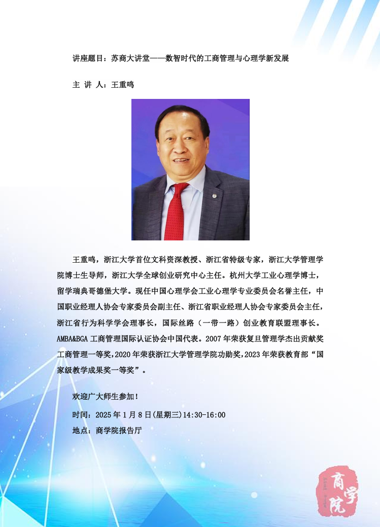 主讲人:王重鸣