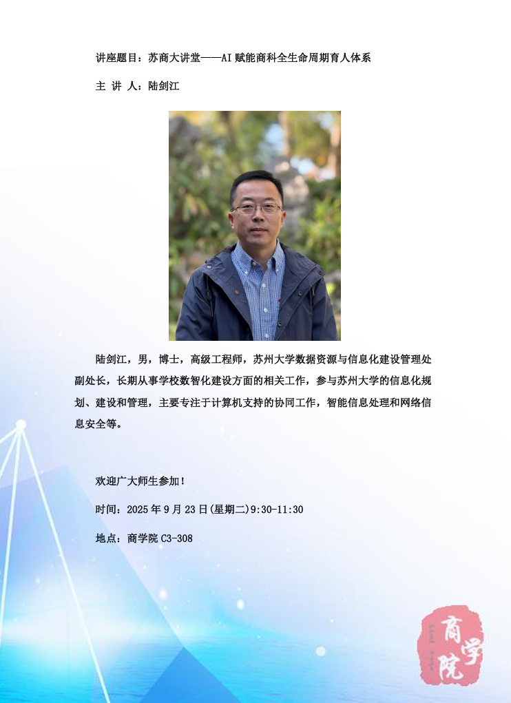 上一条:苏商大讲堂——商科学科交叉服务政府治理与社会发展的理论逻辑与实践路径