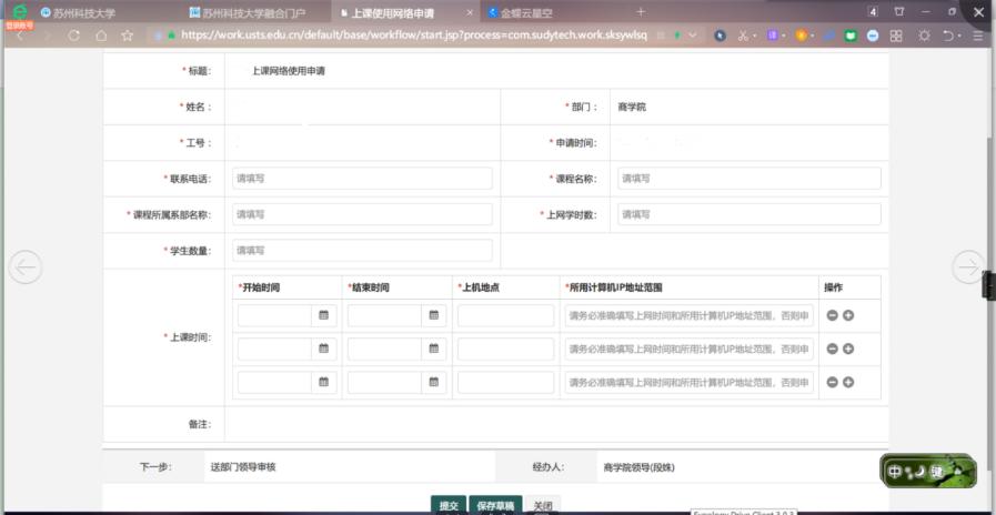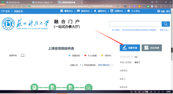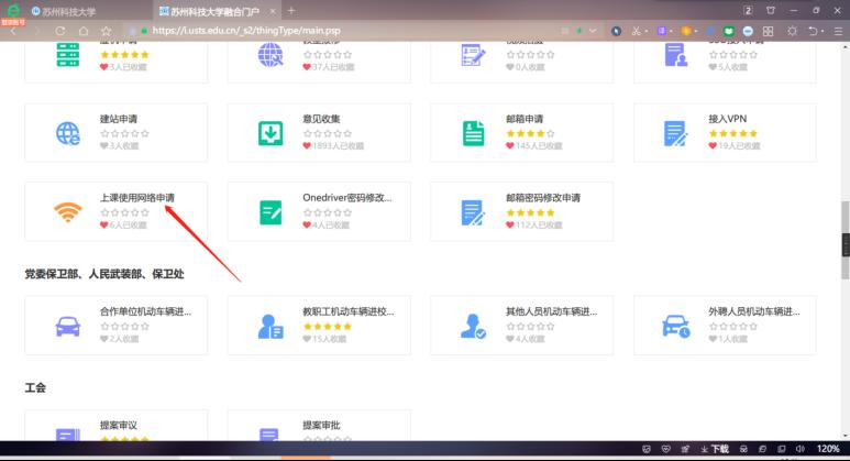 3.向下滚动,找到“上课使用网络申请”,点击进入
